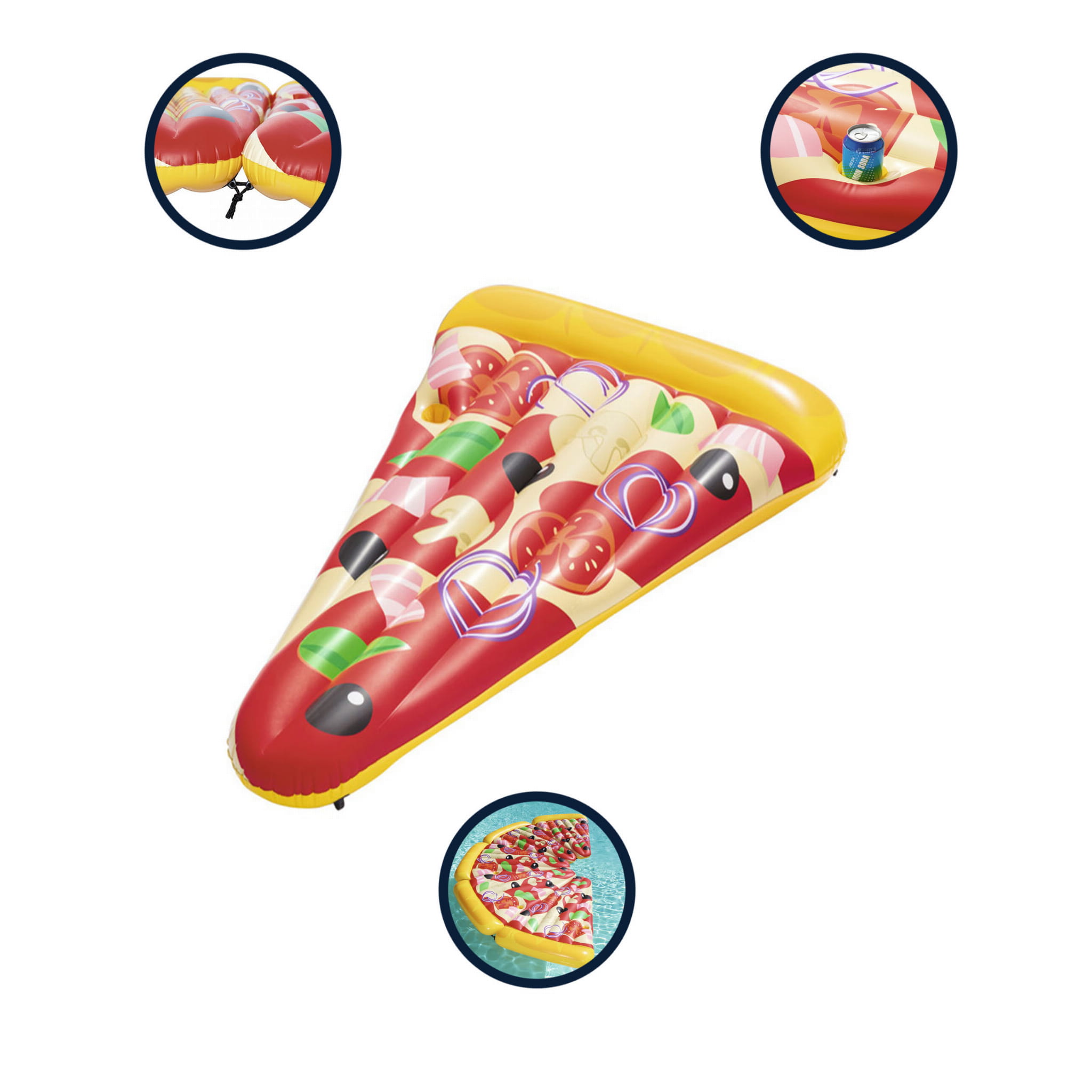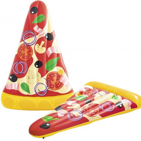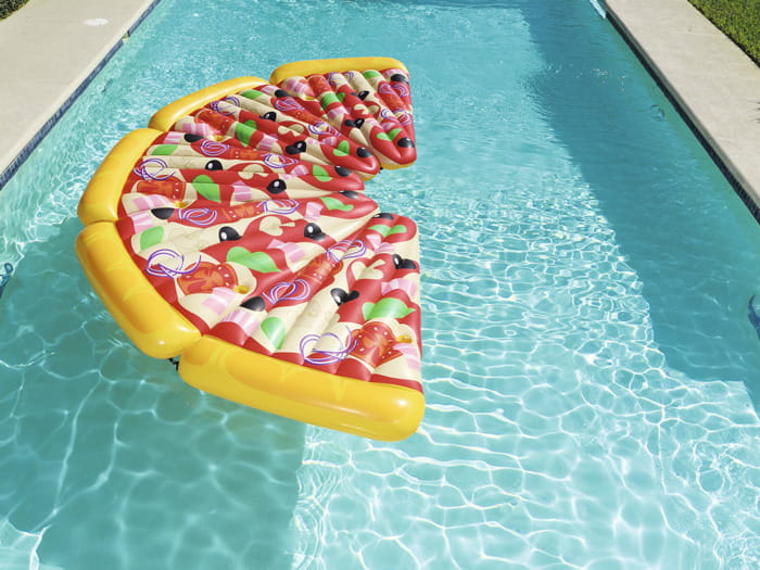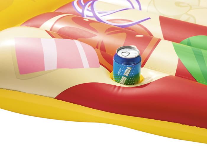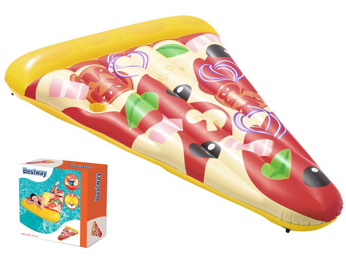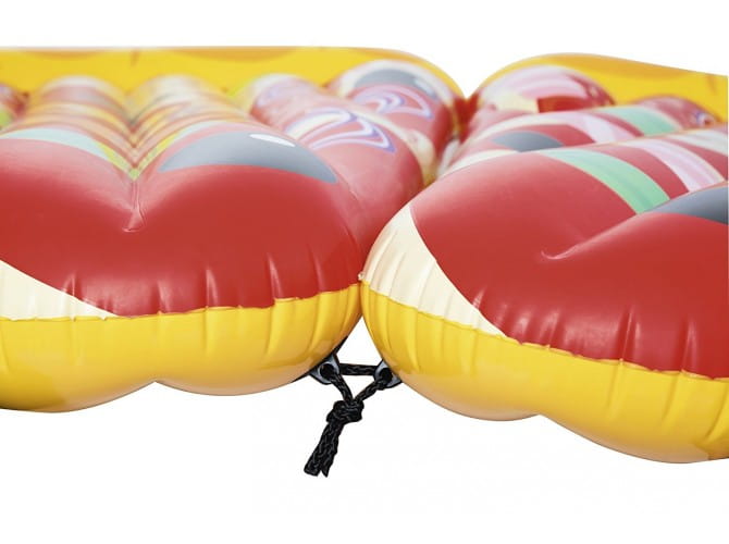 Ten produkt w kształcie pizzy to świetne pomysł firmy Bestway, która specjalizuję się w produktach basenowych. A świetny dlatego iż, dzięki zainstalowanym linkom mocującym mamy możliwość łączenie materaca z tego modelu, tworząc jeden pełny wzór pizzy. Idealne rozwiązanie na wyjście nad wodę w dużym gronie znajomych bądź rodziny, aby być z nimi jak najbliżej a przy tym świetnie się bawić!