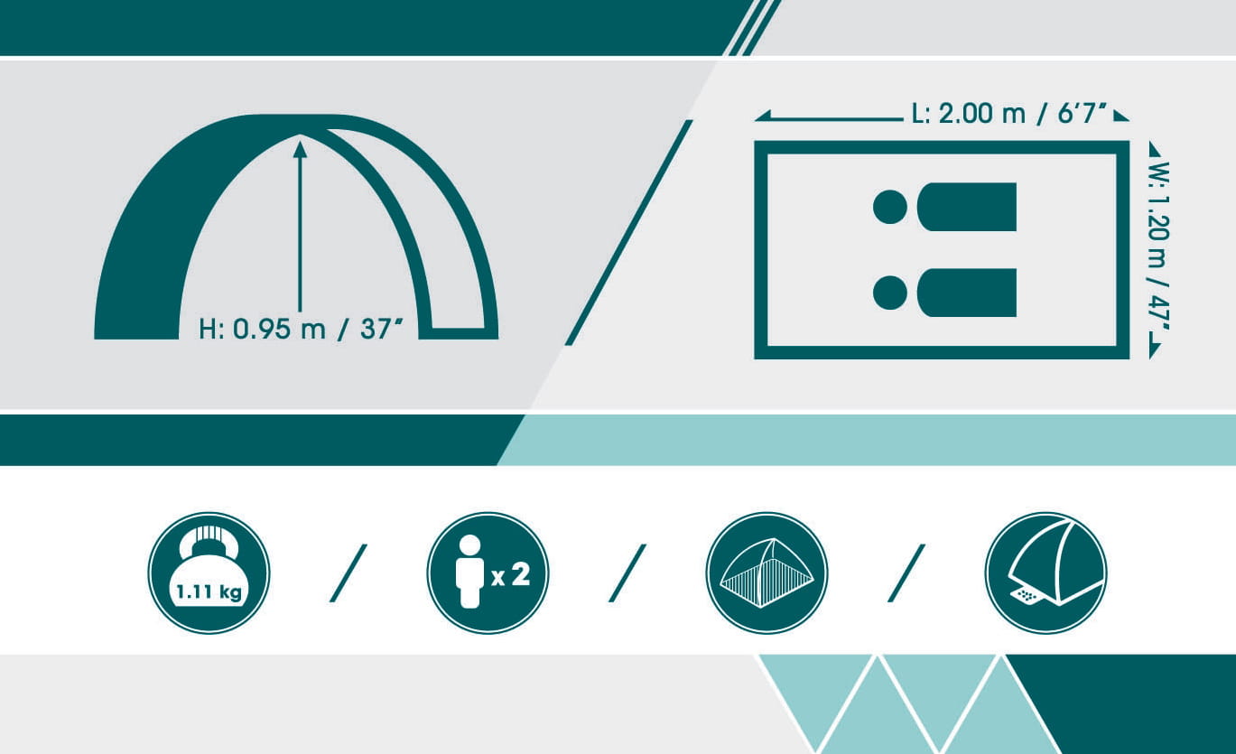 Namiot plażowy Pavillo Camp Beach Tents idealnie nadaje się na plażę, nad jezioro oraz do lasu. Namiot można rozłożyć w mniej niż dziesięć minut i jest odpowiedni dla maksymalnie dwóch osób dorosłych.