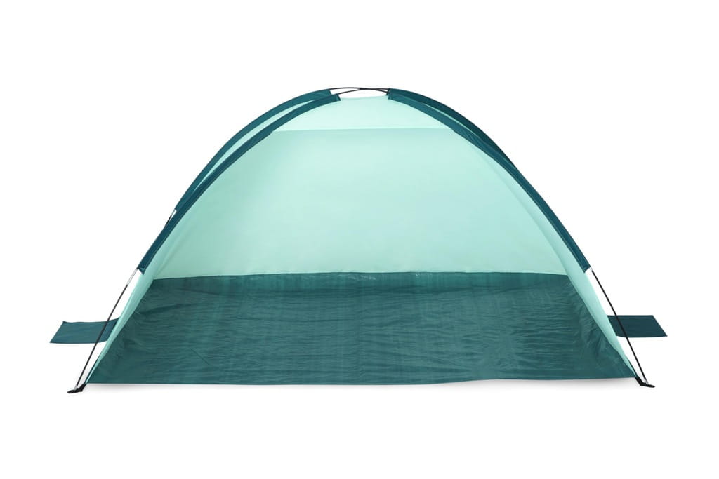 Materiał namiotu plażowego został również zaprojektowany tak, aby nie blaknąć pod wpływem promieni słonecznych, dzięki czemu wygląda jak nowy przy każdym użyciu. W komplecie z czterema kołkami i torbą transportową, dzięki której będziesz mógł zabrać namiot gdziekolwiek zechcesz a nie zajmie on dużo miejsca.