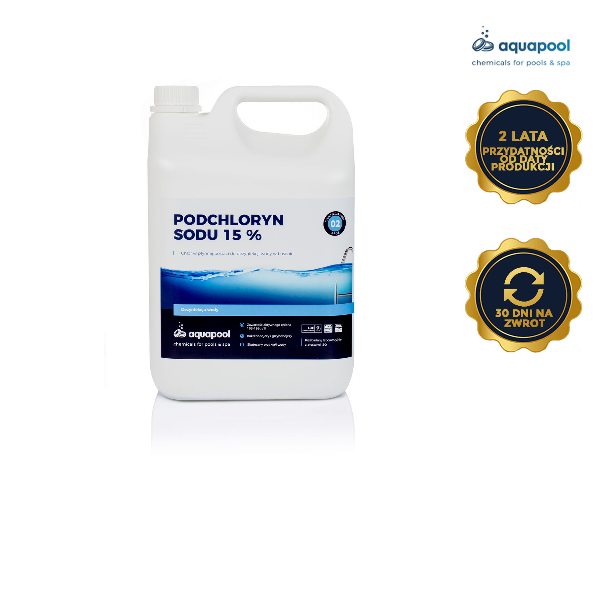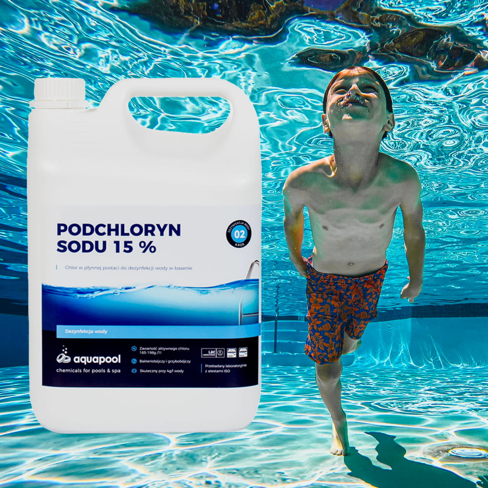 Roztwór podchlorynu sodu zawiera minimum 15% aktywnego chloru.