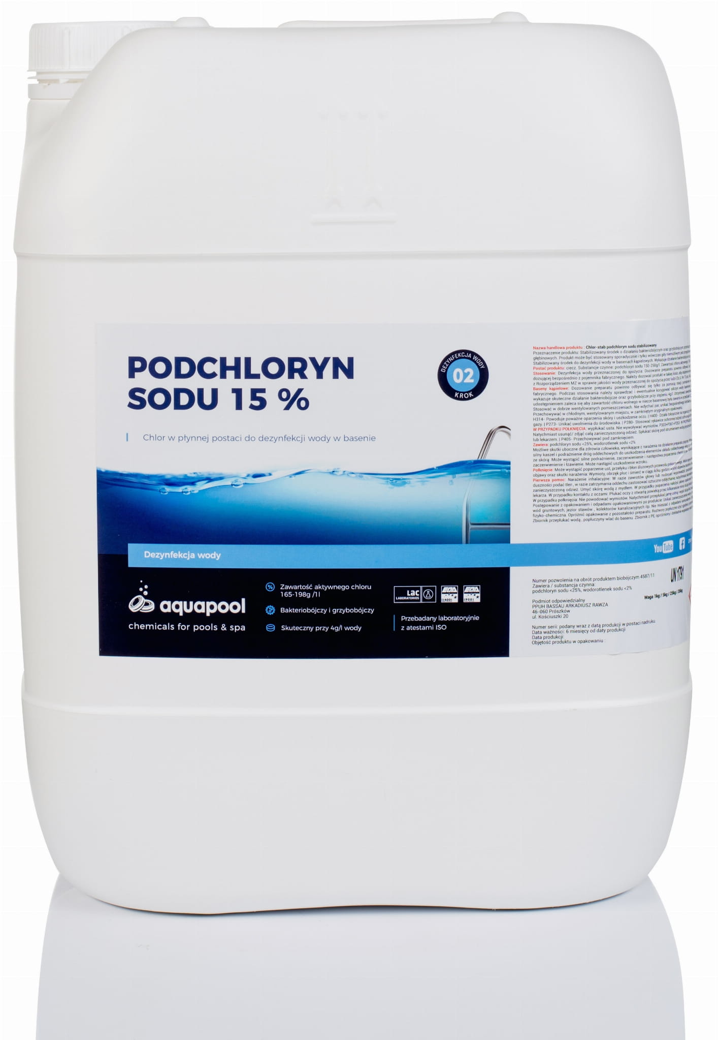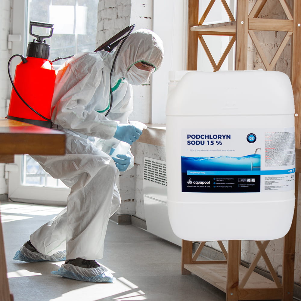 Roztwór podchlorynu sodu zawiera minimum 15% aktywnego chloru.