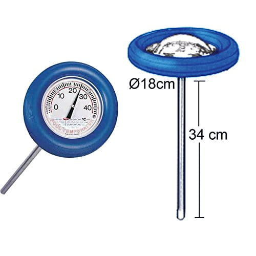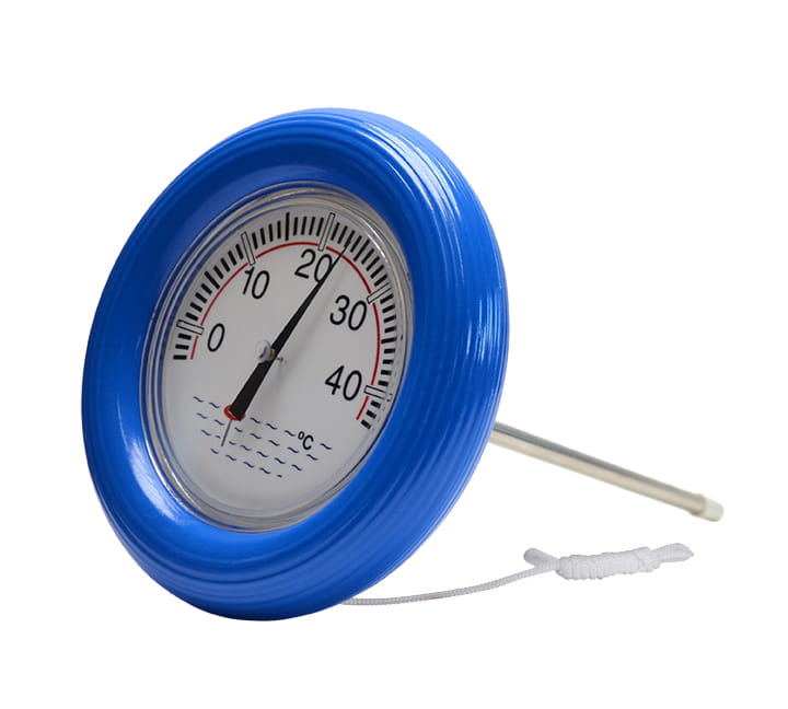 Termometr basenowy jest wyposażony w sznurek za pomocą którego możesz zamontować go do drabinki w basenie lub skimmera basenowego. Jako jedyny w naszej ofercie posiada wielką i czytelną skalę dlatego bez problemu dojrzysz czy woda jest ciepła bez wskakiwania do niej lub nachylania się nad brzegiem basenu. Termometr okrągły do basenu to idealny model dla osób starszych którym zależy na komforcie oraz dokładnym mierzeniu temperatury wody w basenie ogrodowym. Termometr jest wyposażony w długą bardzo delikatną na zmiany temperatury sondę ok 40 cm. Termometr basenowy to niezbędne akcesorium w basenie ogrodowym.
