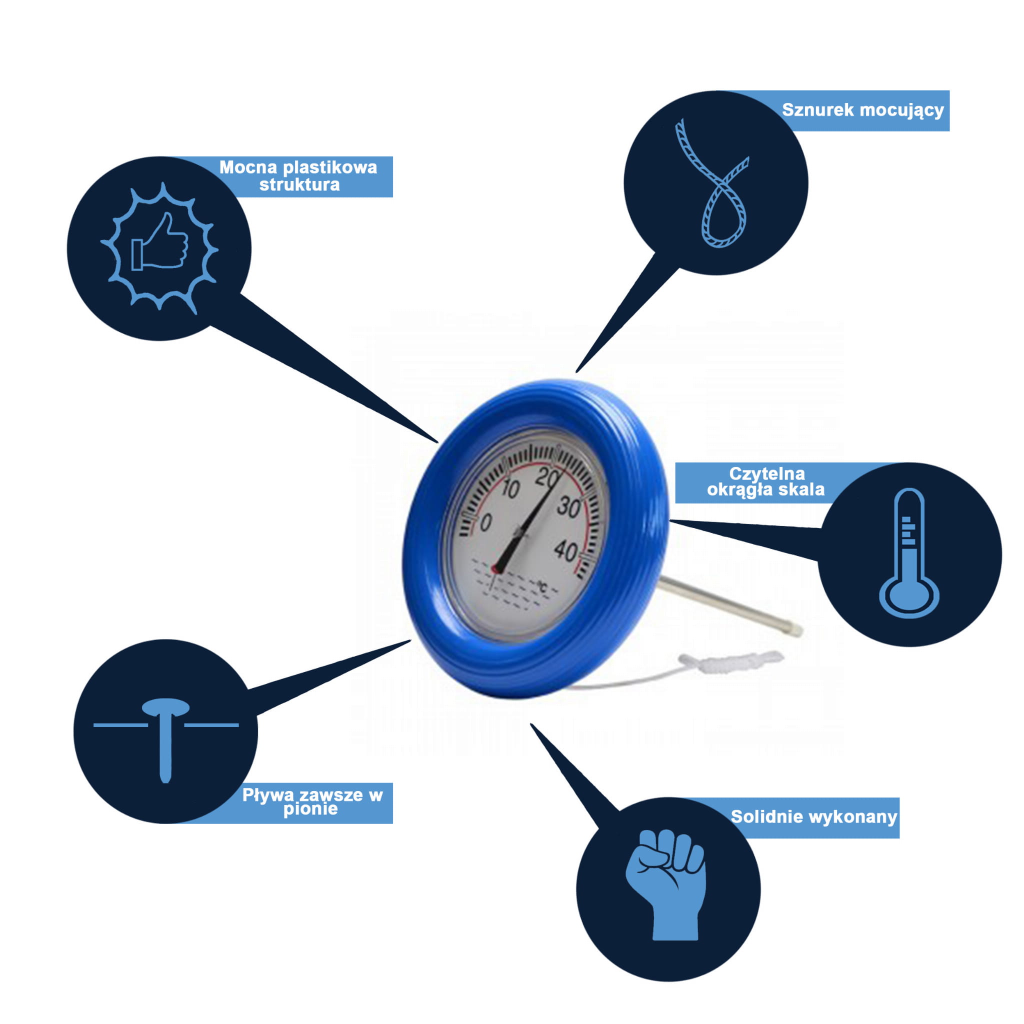 Termometr do basenu niebieski okrągły z sondą i sznurkiem
