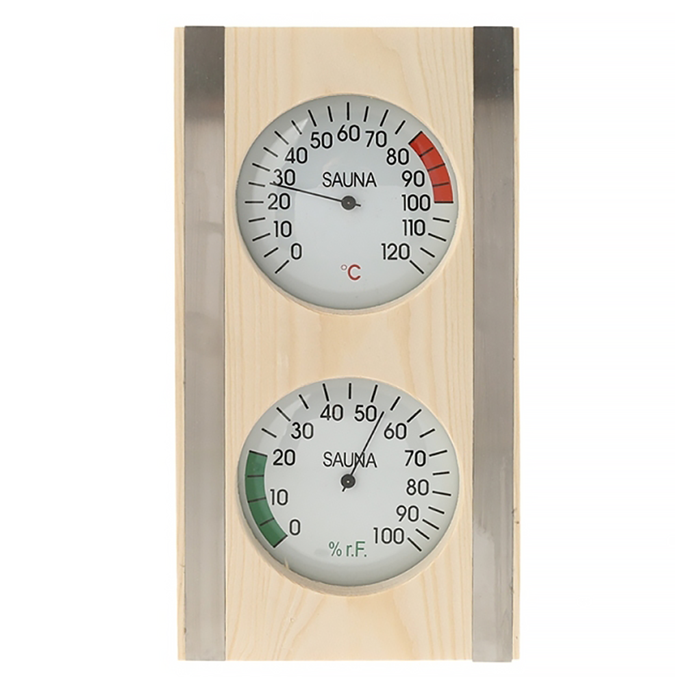 Termometr do sauny i higrometr w jednym to podstawowe urządzenie do sauny. Termometr do sauny zapewni nam on informacje o temperaturze i wilgotności w saunie. Dzięki temu będziemy mogli bezpiecznie korzystać z relaksujących właściwości gorącego powietrza i pary.