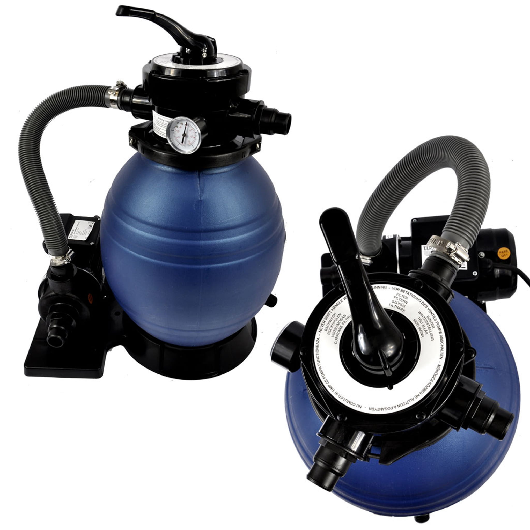 Zestaw filtracyjny piaskowy to profesjonalne filtry do basenu, zapewniają właściwe parametry wody. Gwarancja satysfakcji i zadowolenia z tego jak krystalicznie czysta może być woda. Wkład filtracyjny - piasek, fibalon lub szkło filtracyjne, wszystko dostępne w naszym sklepie - jest tani, umożliwia wielokrotną, wieloletnią eksploatację. A sam zestaw filtracyjny udostępnia funkcje jego regeneracji. Filtr posiada uniwersalne końcówki pod wąż 32 / 38 mm. W zależności od intensywności i pojemności basenu zestaw zapewnia właściwą filtrację już przy kilku godzinach pracy dziennie.