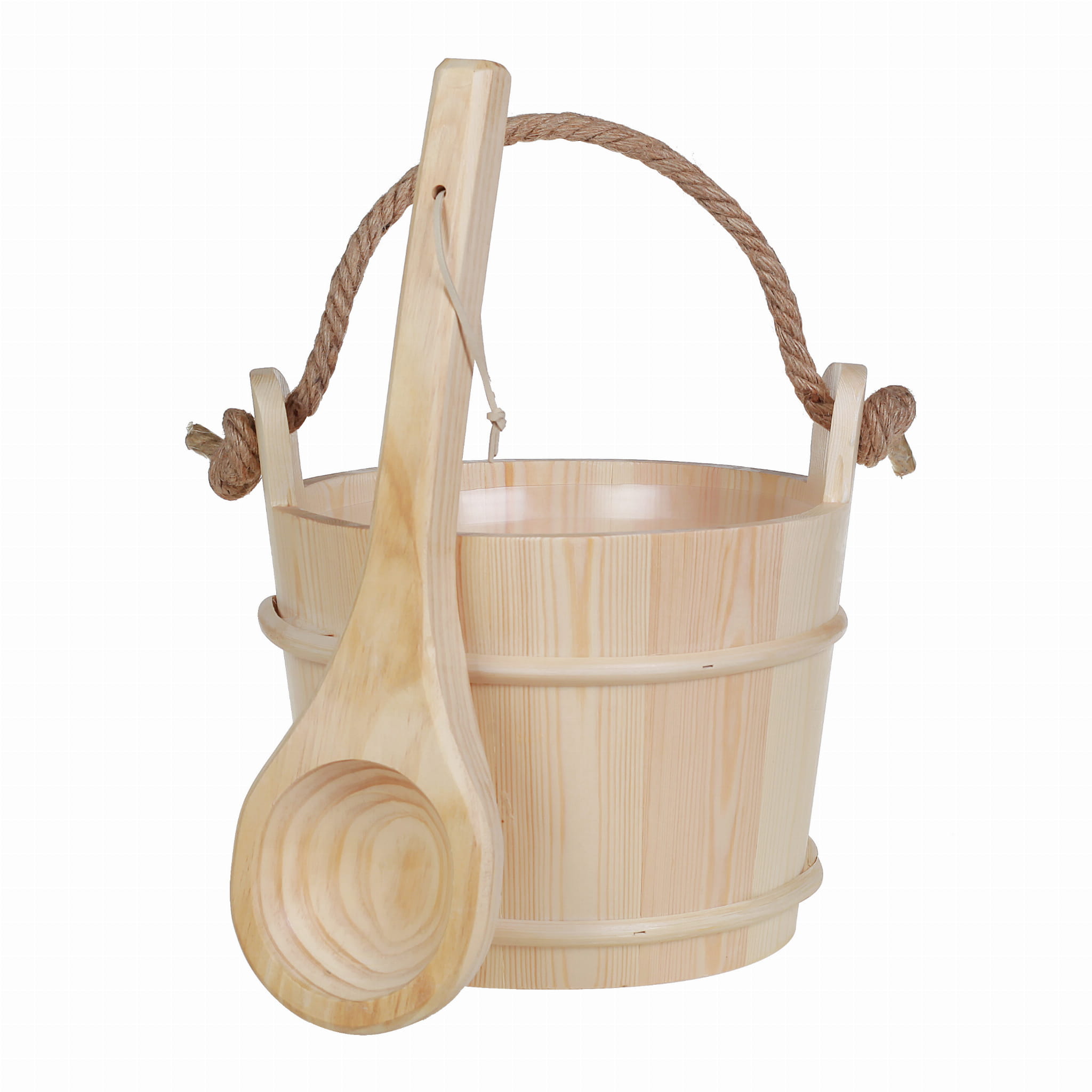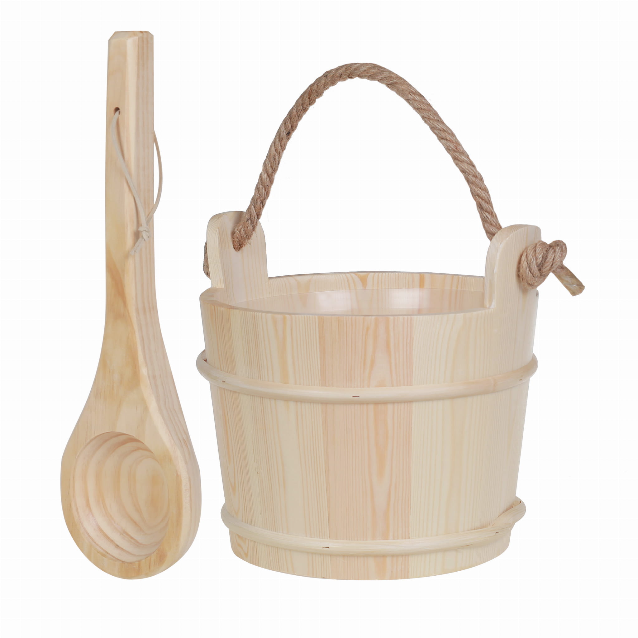 Cebrzyk, wiaderko ze sznurem 5l+ chochla drewniana do sauny wykonane z wysokiej jakości drewna sosnowego otoczony wierzbowymi pierścieniami. Wiadro wypełnione plastikowym wkładem co zapewnia wytrzymałość i odporność na zniszczenie.